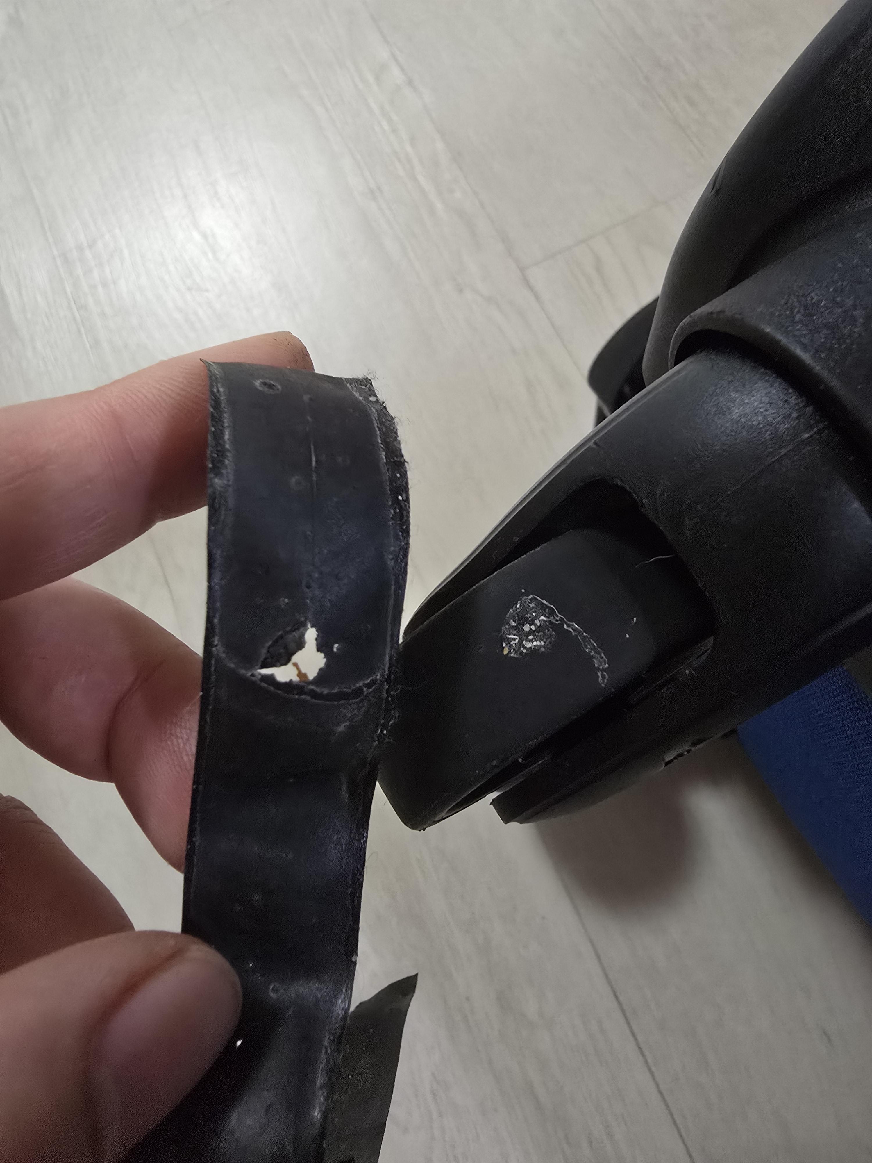 바퀴를 교체할까도 생각했지만 오래된 캐리어이고 다른 바퀴들은 나름 멀쩡한 상태라 커버를 씌워서 사용 가능하다면 몇 번 더 사용하고 폐기하기로 했어요.