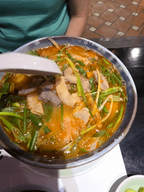 구글 후기에 극찬이 많았던 특히 '두 번 먹으세요. 세 번 먹으세요.'를 외쳤던 매콤한 곱창 쌀국수를 먹어본 우리의 반응은...