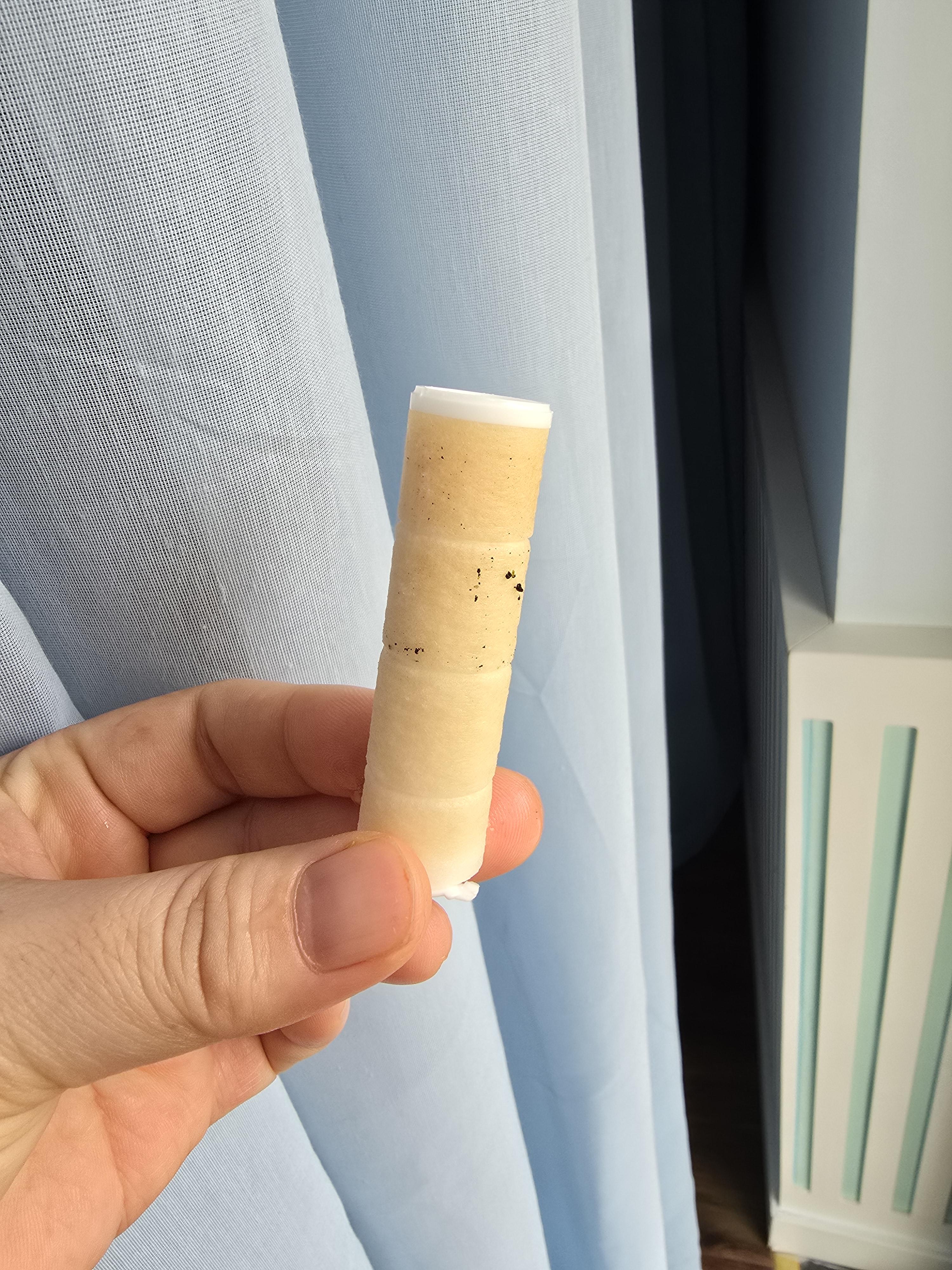 며칠 되지 않았는데 누렇게 변하고 불순물이 묻은 여행용 필터 내부 모습입니다.